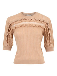 Salima ruffled-trim blouse Highlights - Brown - Ribbed knit - Lace detail - Ruffled trim - Round neck - Half-length sleeves Imported Composition Merino 100% Washing instructions Read Manufacturer Guidelines