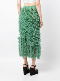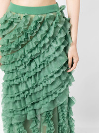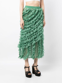 Sarafina ruffled midi skirt Highlights - Jade green - Fully ruffled - Elasticated waistband - High-waisted - Mid-length - Straight hem Imported Composition Nylon 55%, Polyester 45% SIZE & FIT Model measurements Height 5 ft 10 in(1.77 m) Bust/Chest 28.74 in(73 cm) Hips 35.82 in(91 cm) Waist 24.4 in(62 cm) FittingInformation This midi-length skirt is intended to be worn high on the waist The elasticated waist allows for a comfortable fit Made from a midweight non-stretch fabric, this piece offers minimal elasticity when worn This piece fits true to size – take your usual size Washing instructions Dry Clean Only
