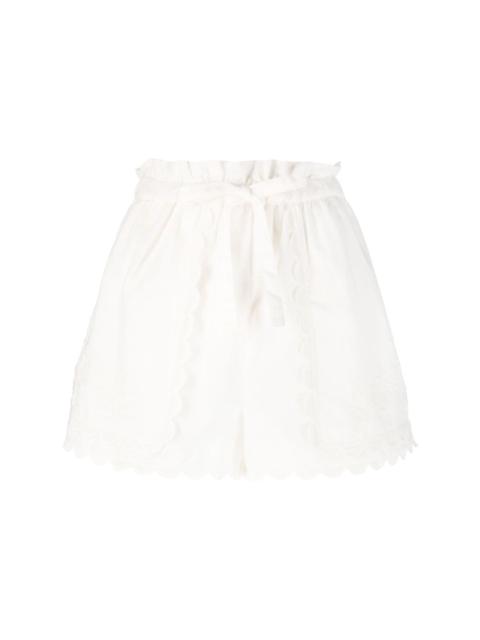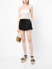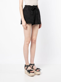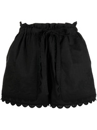 Nellie embroidered shorts Highlights - Black - Cotton-linen blend - Embroidered design - Scallop edge - Elasticated drawstring waistband - Two side inset pockets Imported Composition Body: Linen/Flax 60%, Cotton 40% SIZE & FIT Model measurements Height 5 ft 10 in(1.78 m) Bust/Chest 31.1 in(79 cm) Hips 34.25 in(87 cm) Waist 23.62 in(60 cm) Washing instructions Dry Clean Only