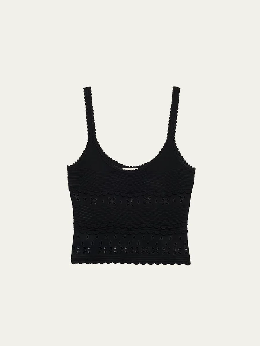Ulla Johnson "Sea" camisole adorned with tonal embroidery and delicate scalloped trim Scoop neckline Sleeveless Cropped fit Pullover style Viscose/nylon/polyamide Dry clean Imported