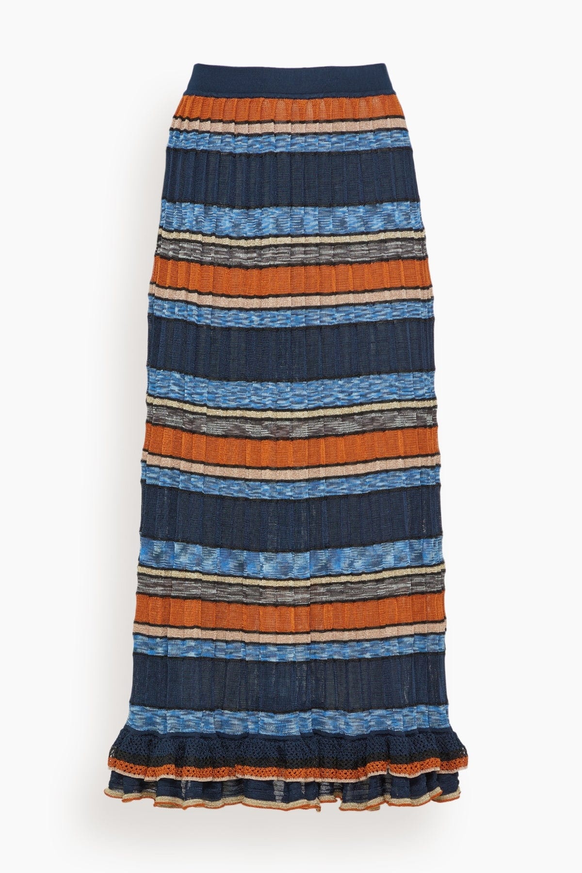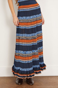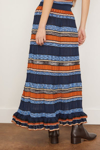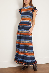 The Ulla Johnson Seraphine Skirt is a must-have piece from their Resort 25 Collection. This midi skirt is crafted in a bold, striped knit with a flowing silhouette that moves with you. Wear yours with a sweater and boots. - Knit skirt - Midi length - A-line silhouette - High rise - Pleating - 80% Viscose, 11% Polyester, 6% Nylon, 3% Metallic