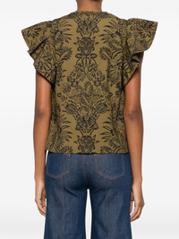 ruffled floral-pattern blouse Highlights - Green - Floral print - Ruffled sleeves - V-neck - Keyhole detail Imported Composition Cotton 100% SIZE & FIT Model measurements Height 5 ft 11 in(1.8 m) Bust/Chest 32.28 in(82 cm) Hips 35.82 in(91 cm) Waist 25.19 in(64 cm) Washing instructions Read Manufacturer Guidelines