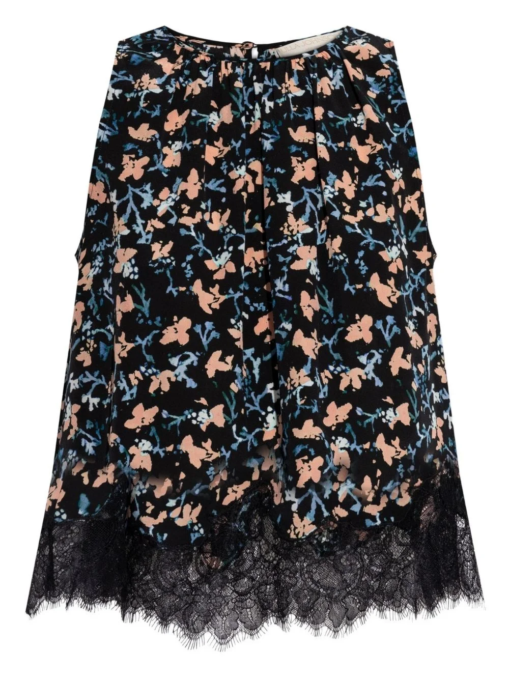Sierra blouse Highlights - Black - Floral pattern in pink and blue - Delicate lace trim - Pleated design - Button fastening at the back Imported Composition Silk 100% Washing instructions Read Manufacturer Guidelines