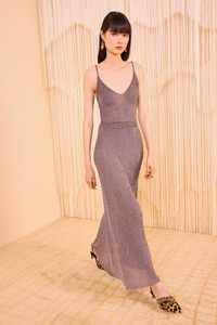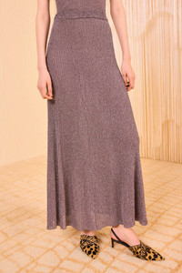 Slinky and effortless, the Renae Skirt is rib-knitted from lurex yarns with a subtle flicker. It is elasticated at the waist for enhanced comfort and kisses the ankle at the maxi hemline. The soft pewter gray allows for wardrobe versatility. Composition: 70% Viscose, 30% Polyester Size & Fit - Model Height: 5'9" - This maxi skirt has an elastic waistband and is designed to be worn at the high waist.