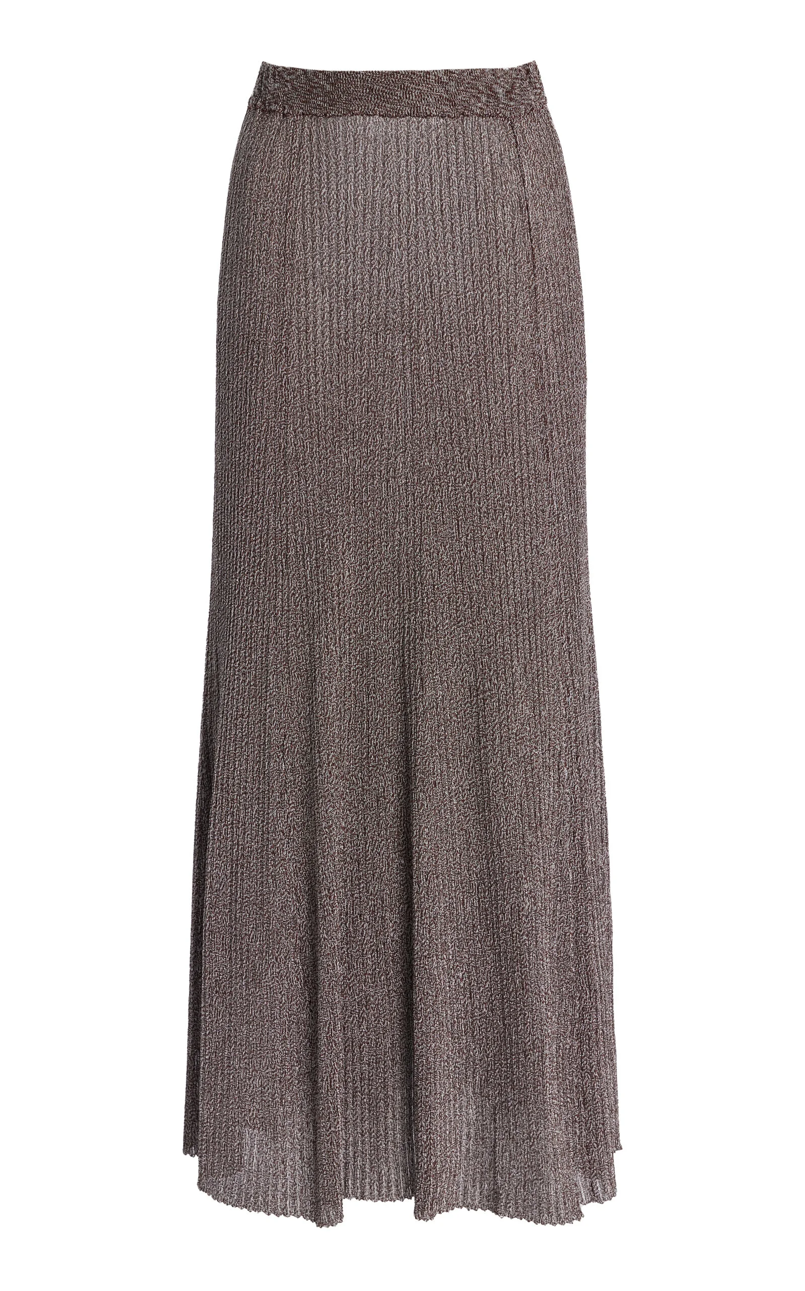 PRODUCT DETAILS - Regular fit, high rise, flowy sheath silhouette maxi skirt - Slip-On - Unlined - Composition: 70% Viscose, 30% Polyester - Color: grey - Dry Clean Only - Pre-Fall '25