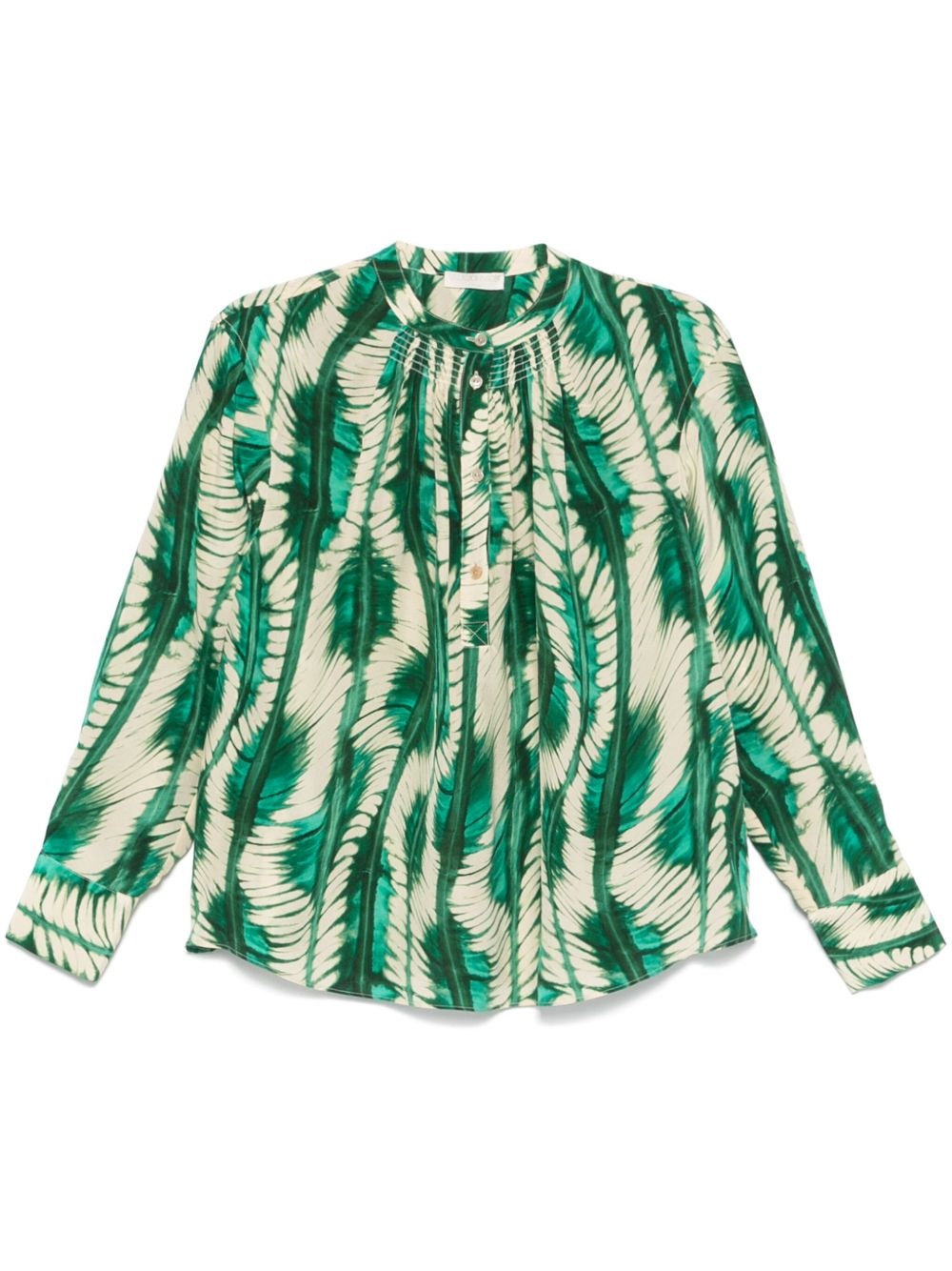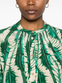 Nehir blouse Highlights - Emerald green - Front button placket - Long sleeves - Buttoned cuffs - Leaf print Imported Composition Silk 100% SIZE & FIT Model measurements Height 5 ft 11 in(1.8 m) Bust/Chest 32.28 in(82 cm) Hips 36.61 in(93 cm) Waist 24.01 in(61 cm) FittingInformation Designed to be unstructured, offering a loose fit throughout Made from a midweight non-stretch fabric