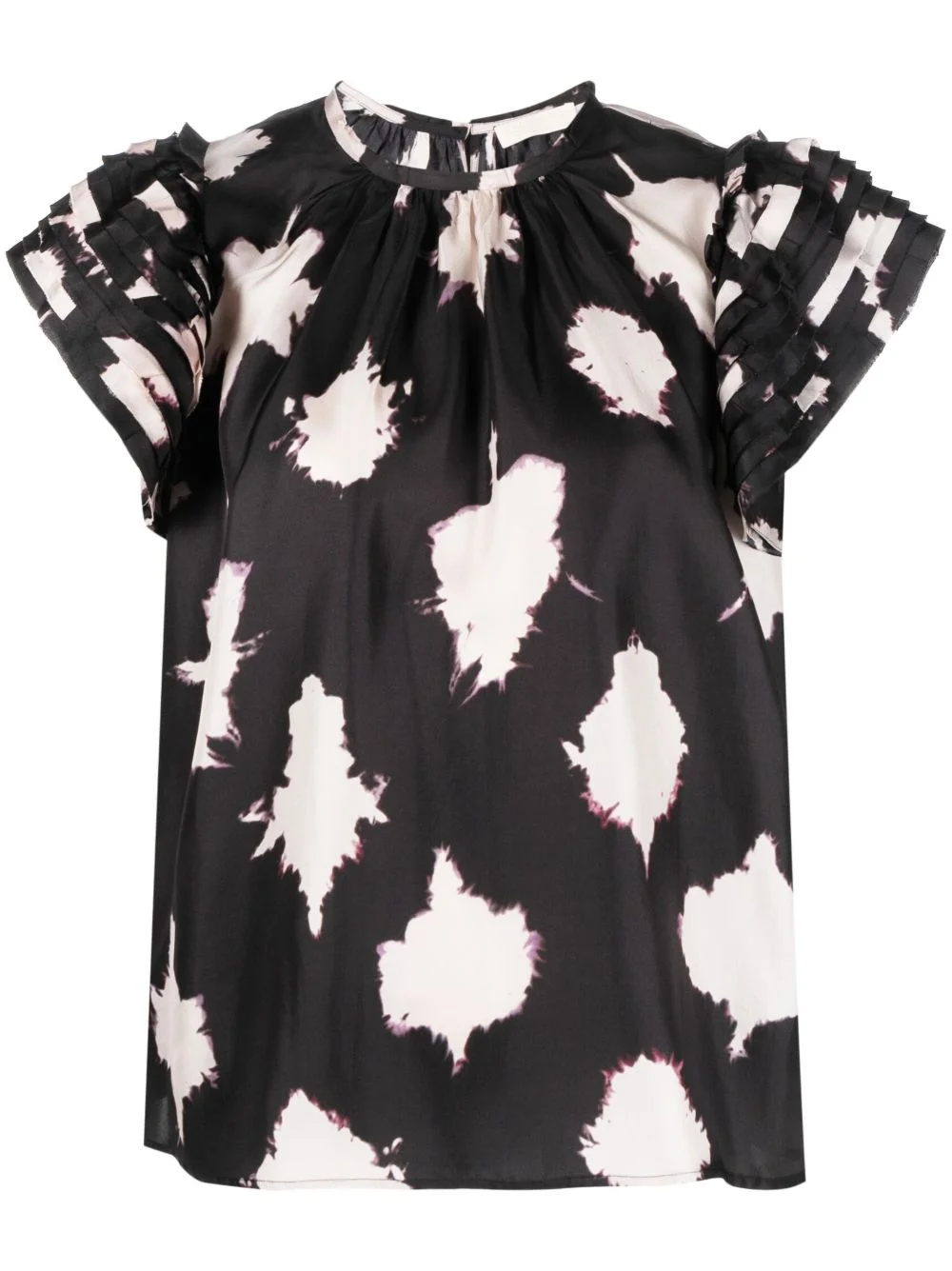 splotch-print silk blouse Highlights - Black/white - Silk - Abstract pattern print - Round neck - Single rear button fastening - Flutter sleeves - Straight hem Imported Composition Silk 100% SIZE & FIT Model measurements Height 5 ft 10 in(1.78 m) Bust/Chest 31.49 in(80 cm) Hips 36.22 in(92 cm) Waist 25.59 in(65 cm) FittingInformation Designed to be unstructured, offering a loose fit throughout Made from a lightweight non-stretch fabric This piece fits true to size – take your usual size Washing instructions Dry Clean Only
