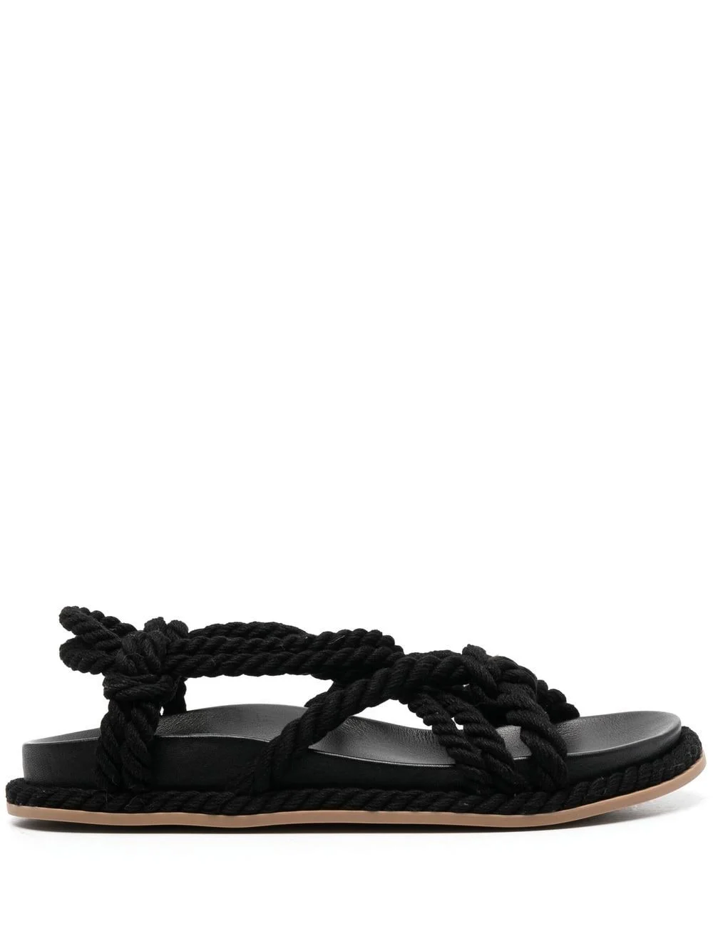 Suri twisted rope sandals Highlights - Jet black - Calf leather blend - Rope detailing - Round toe - Branded leather insole - Open toe - Flat rubber sole - Slip-on style Imported Composition Outer: Fabric 100% Lining: Calf Leather 100%, Fabric 100% Sole: Rubber 100% SIZE & FIT Measurement HEEL 1.18 in(3 cm) Sole height 0.59 in(1.5 cm)