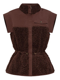 panelled fleece waistcoat Highlights - Brown - Fleece texture - Zip fastening - Turtleneck - Sleeveless - Drawstring hem - Embroidered logo patch Imported Composition Nylon 100%, Polyester 100% Washing instructions Read Manufacturer Guidelines