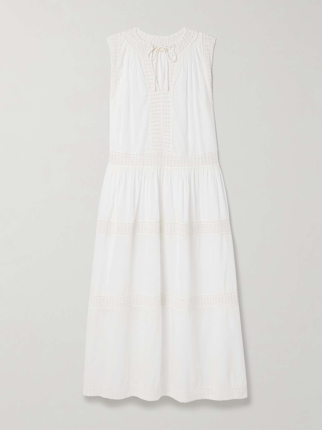 The breezy, slightly sheer design of Ulla Johnson's 'Thalia' dress makes it a perfect swim coverup. It's cut from lightweight cotton-voile and has hand-crocheted trims. Undo the neck ties for an even more relaxed feel. Size & Fit - Fits true to size, however those who are between sizes should take the smaller size - Designed for a loose fit - Lightweight, non-stretchy fabric - Model is 175cm/ 5'9" and is wearing a size XSmall Model measurements: - Bust: 75cm/ 29.5" - Waist: 60cm/ 23.5" - Hip: 93cm/ 36.5" Details & Care - White cotton-voile and crochet - Slips on - 100% cotton - Machine wash