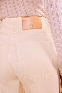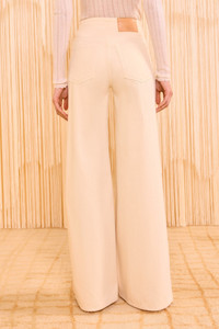 Our new Bianca is a classic wide-leg with a distinctive feel, designed with center-front raised seams down each side. It is responsibly handmade in Los Angeles from premium denim in our timeless and refined off-white Birch wash. It has a flattering, high-rise waist and a Hollywood waistband for a clean finish. It fastens with a side-seam zipper. Composition: 100% Cotton Size & Fit - Model Height: 5'10"