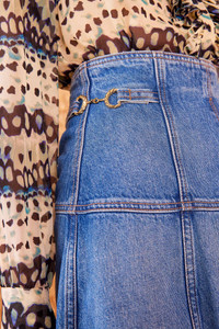 A forever favorite silhouette, the Brigette Skirt is handcrafted in Los Angeles from premium denim in our goes-with-everything blue Danube wash. This classic A-line cut has a high paneled waist that’s accented with our new custom buckle detailing in twisted brass. It falls to midi length and fastens with a back zipper. Composition: 100% Cotton