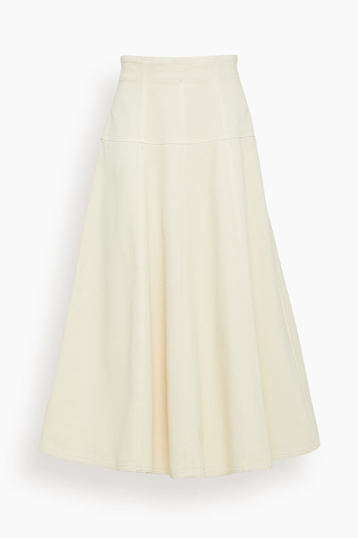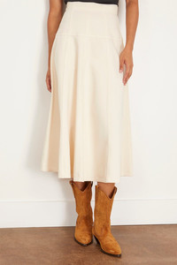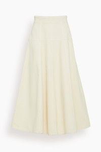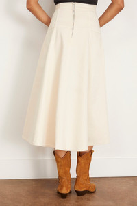 The Ulla Johnson Brigette Skirt is a classic with a twist. This denim skirt features a flattering a-line silhouette with a high rise and a side buckle detail. Wear yours with a sweater and boots. FIT DESCRIPTION MODEL MEASUREMENTS - Fits true to size, take your normal size - Denim skirt - Midi length - A-line silhouette - High rise - Buckle detail - Exposed back zipper - 100% Cotton - Celeste is wearing a size 2 - Bust: 35" - Waist: 25.5" - Hips: 34" - Height: 5’10”