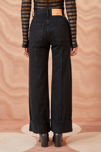 Our best-loved Genevieve Jean returns for Autumn/Winter '23. Handmade in Los Angeles, this wide-leg silhouette features a high-waist, folded cuffs, and pintucks down the center front of each leg. This classic black jean is cut from non-stretch denim with a leather logo-embossed waistband patch and a hand-hammered ring attached to the back belt loop. Each style is designed to perfectly complement the silhouettes of every ready-to-wear collection. Composition: 100% Cotton