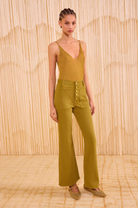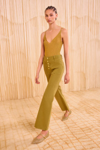 A forever-favorite silhouette, our Lou Jean is responsibly handcrafted in Los Angeles from non-stretch denim with oversized patch pockets and a vintage-inspired flared hem. This elevated essential arrives in our new Argan wash—a rich green that’s softened for a lived-in feel—and has a flattering high-rise waist with our signature monogrammed buttons exposed at the center front. Composition: 100% Cotton Size & Fit - Model Height: 5'10"