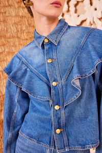 Handmade in Los Angeles, the Mathilde is a classic shirt that’s re-interpreted with playful diagonal ruffles. This Danube blue style has long sleeves with buttoned cuffs, a relaxed fit, and fastens with our signature monogrammed-adorned buttons. Composition: 100% Cotton