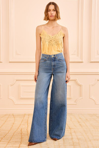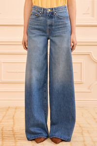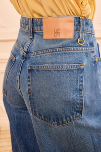 At once relaxed and refined, the Zephyr Jean is crafted from premium denim with a low-slung waist and exaggerate wide legs. This timeless, five-pocket jean arrives in our signature Danube blue wash that’s lightly faded and whiskered for a lived-in feel. - Non-stretch denim - Handcrafted in Los Angeles - Model Height: 5'10" - Designed to sit low at waist with voluminous wide leg - Five-pocket construction - Signature monogram leather patch and hand-hammered ring - Front button and zipper - Composition: 100% cotton - Machine wash cold - Style# UJ9904068