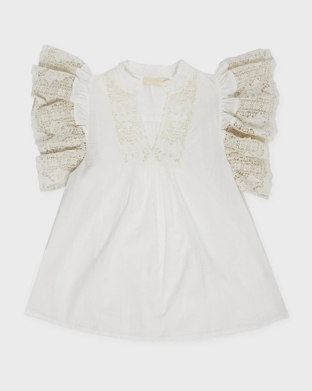 Top Jolie Flutter Sleeve by Ulla Johnson. A breezy, romantic blouse crafted from lightweight cotton voile. The Jolie top features delicate lace trim, short flutter sleeves, and a split neckline for an effortlessly feminine silhouette. Made from 100% cotton, it's a soft and breathable piece. Size and Fit - Fits true to size, choose your usual size - The model is 176 cm tall and is wearing size US 4 Specification - Article number - ID: 176421-082 - Brand: Ulla Johnson - Color: Beige - Washing Instructions: Dry clean - Made of: 100% Cotton