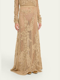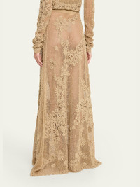 Ulla Johnson "Aria" crochet-knit maxi skirt featuring a floral motif High rise Elastic waistband Slip silhouette Full length Pull-on style Viscose/polyester Dry clean Imported Online Inquiries: BGS21_T6YS6| Store Inquiries: #5060435