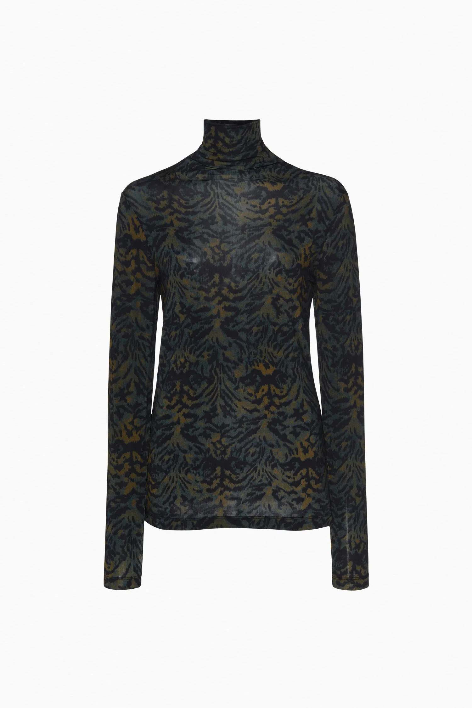The Aurelia Turtleneck in lightweight tricot jersey is a forever favorite silhouette, artfully reimagined in lush, ikat motifs evocative of animal prints. This multicolored long-sleeve top has a close fit that makes it perfect for layering or wearing on its own, while the high neck adds an elegant touch. - Tricot jersey - Model Height: 5'11" - Designed for a close fit - Turtleneck - Long sleeves - Pullover style - Composition: 91% rayon, 9% elastane - Gentle machine wash