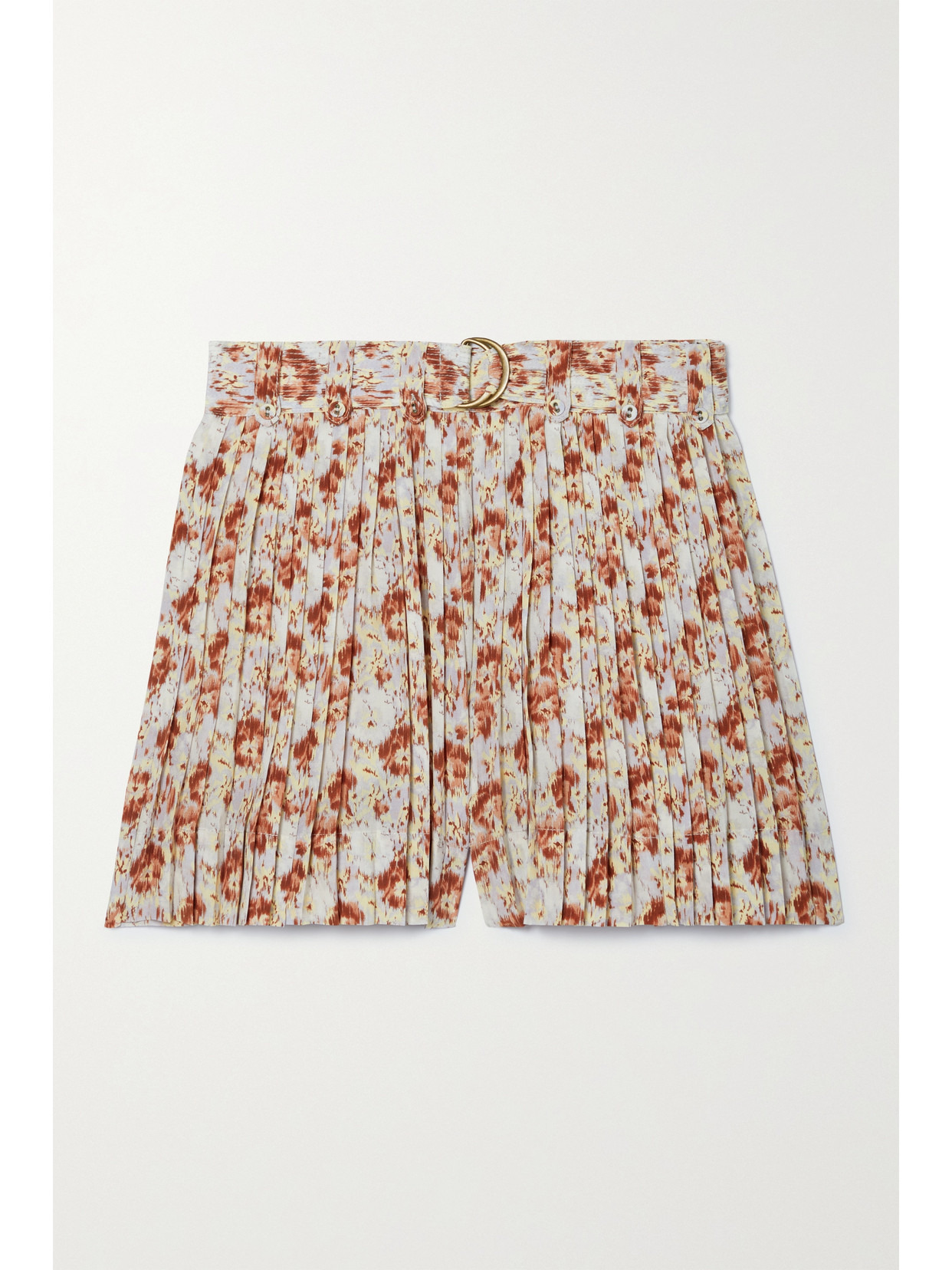 Margot Belted Pleated Floral-print Silk Crepe De Chine Shorts