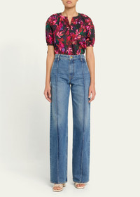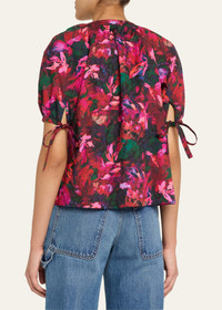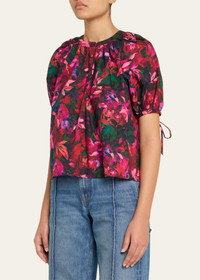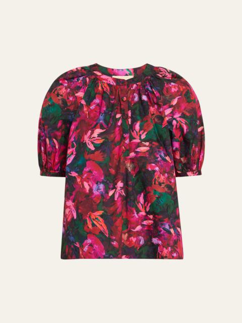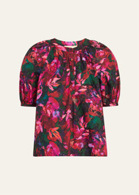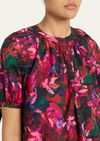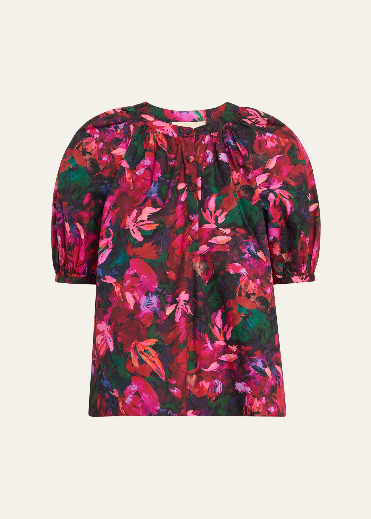 Ulla Johnson "Vienne" cotton blouse featuring a vibrant floral print Crew neckline; button-placket Short puff sleeves Classic fit Hem falls to the hip Pullover style Cotton Machine wash cold Imported Online Inquiries: BGS21_T6BC0| Store Inquiries: #4952748