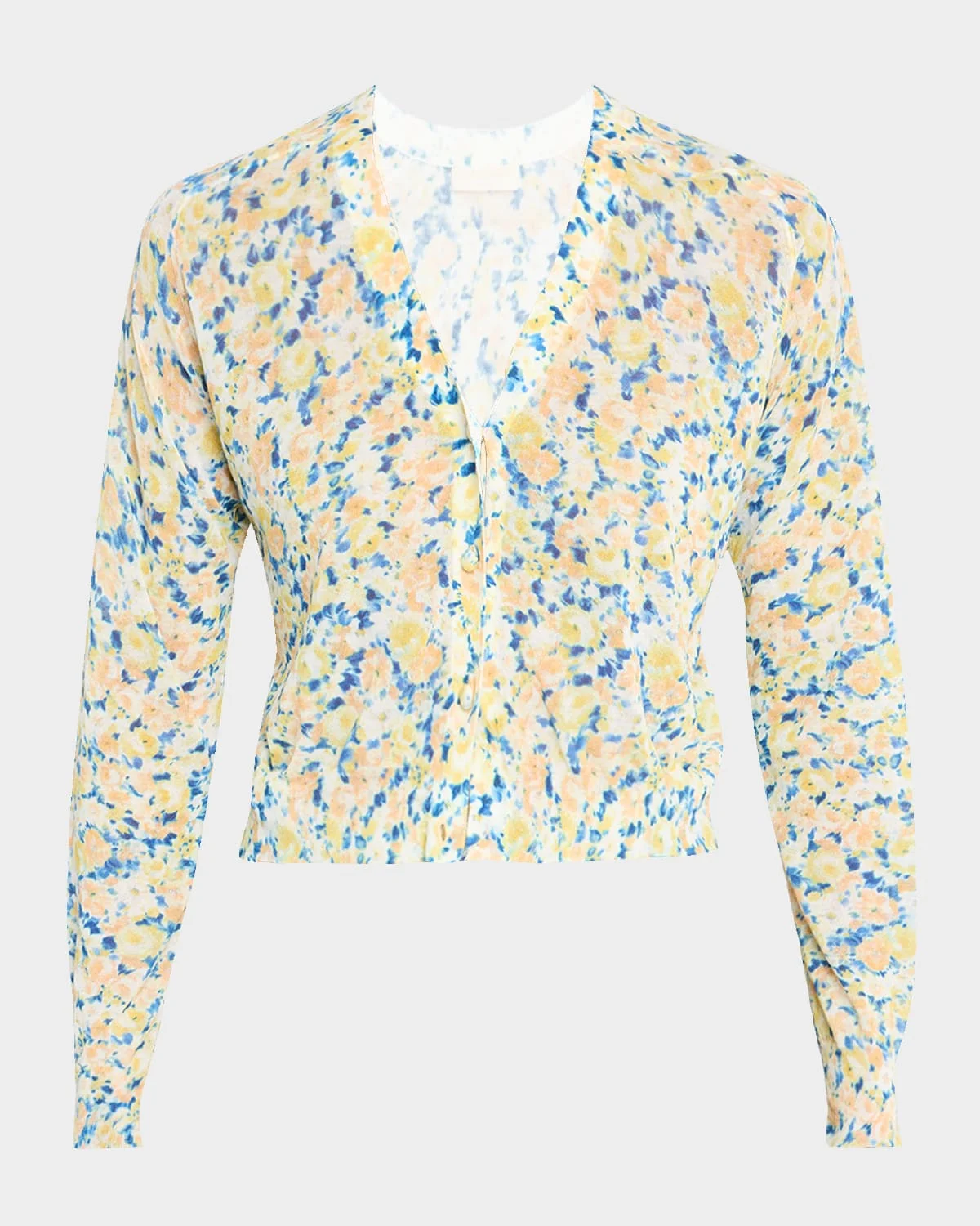 Ulla Johnson "Vivienne" ultra-soft knit cardigan accented with a delicate floral print V neckline Long sleeves Cropped fit Button-front & nbsp; Cotton/nylon/polyamide Dry clean Imported SIZE & FITModel measurements: 5 & apos;10" tallModel is wearing a US size 4/Small