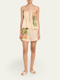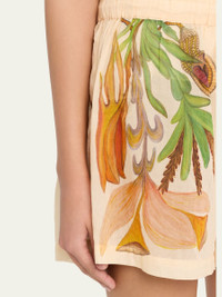 Crafted from airy cotton, Ulla Johnson's "Bijou" coverup shorts are printed with the surreal botanical work of Art Brut painter, Anna Zemankova Highrise drawstring waistband Relaxed legs Pullon style Cotton Made in Portugal