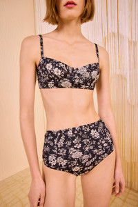 The Zahara Bikini Bottom is our celebrated high-waisted silhouette, adorned with flattering princess seams that enhance the contours of the body. It features softly tumbling blooms against a classic black backdrop and coordinates beautifully with our Zahara Bikini Top. Composition: 80% Polyamide, 20% Elastane Size & Fit - Model Height: 5'10" - High rise. Medium coverage brief.