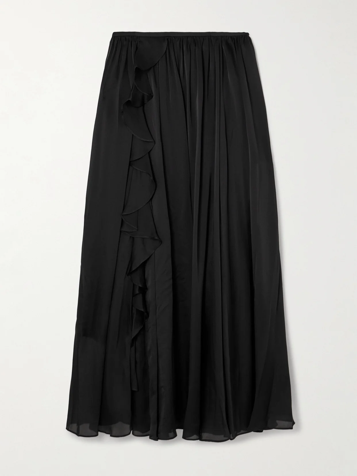 Zena Asymmetric Ruffled Pleated Silk-chiffon Midi Skirt