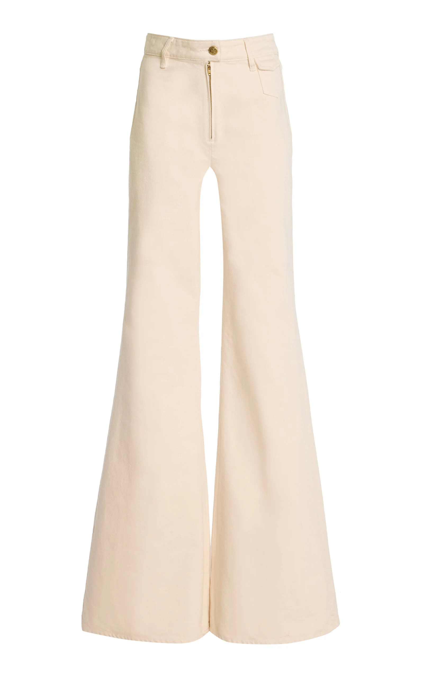 The latest in a series of artist collaborations, the Spring/ Summer '26 collection taps the estate of abstract expressionist Helen Frankenthaler, whose influence is felt in genius color clashes (antique rose and acid green, blush and electric blue) and straight-from-the-canvas motifs. Cut from non-stretch denim, the 'Zephyr' jean has a high rise that falls to a flared leg from the thigh. PRODUCT DETAILS - Spring '26 - Zip fly fastening - Composition: 100% Cotton - Designer color: Cowrie - Machine wash - Made in the USA