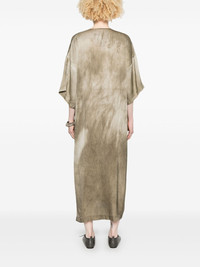 satin midi dress Highlights - Light brown - Side slits - V-neck - Short sleeves Made in Italy Composition Silk 94%, Elastane 6% SIZE & FIT Model measurements Height 5 ft 9 in(1.75 m) Bust/Chest 34.64 in(88 cm) Hips 36.61 in(93 cm) Waist 26.37 in(67 cm) FittingInformation Designed to be unstructured, offering a loose fit throughout The vented hem offers movement at the rear Made from a midweight stretch fabric, this piece offers elasticity and flexibility when worn