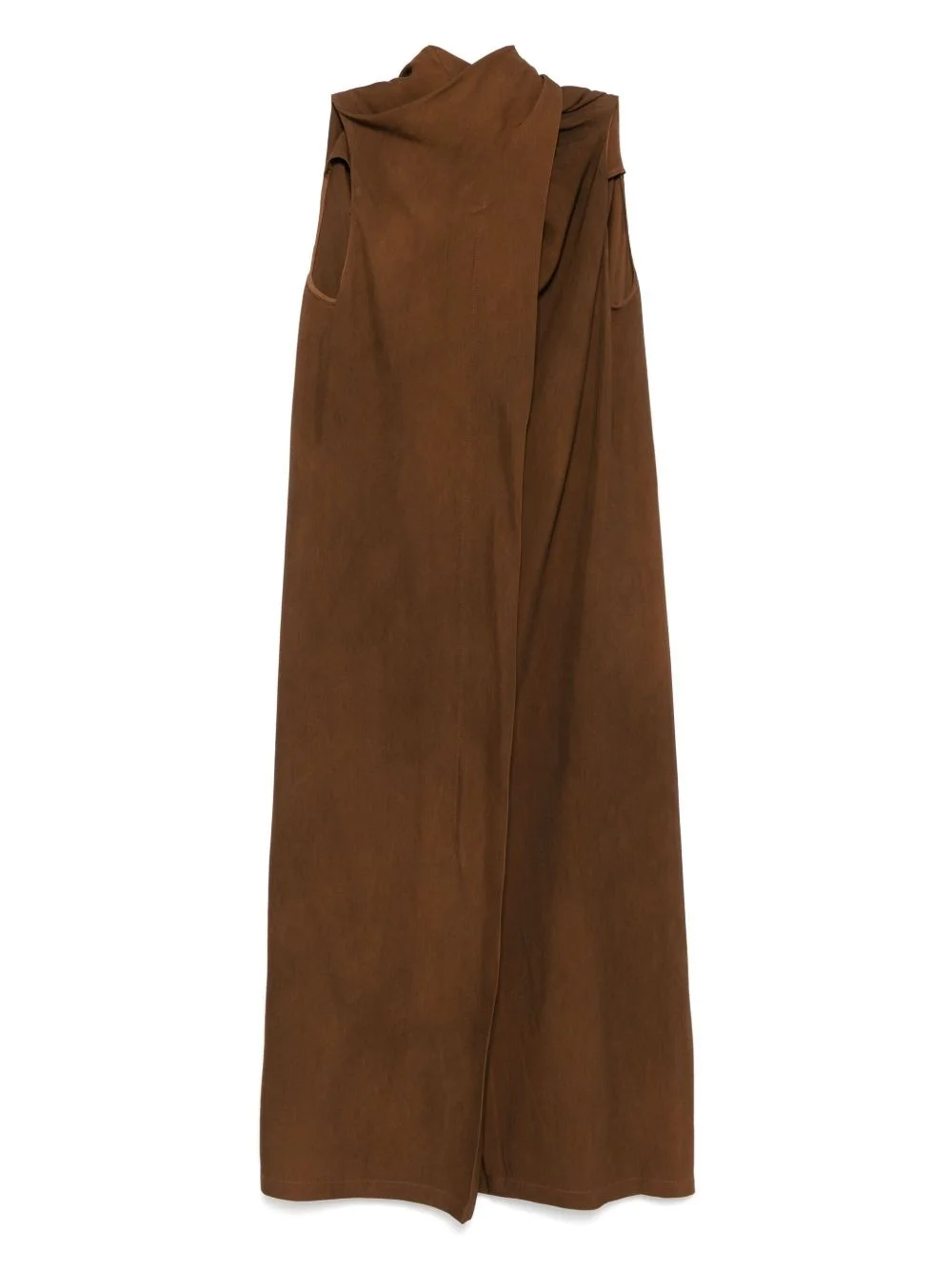 Amana dress Highlights - Coffee brown - Rear tie fastening - V-back - Front slit - Draped detailing Made in Italy Composition Viscose 100% SIZE & FIT Model measurements Height 5 ft 9 in(1.76 m) Bust/Chest 30.7 in(78 cm) Hips 33.46 in(85 cm) Waist 24.4 in(62 cm) FittingInformation Designed to be unstructured, offering a loose fit throughout The vented hem offers movement at the rear Made from a midweight non-stretch fabric