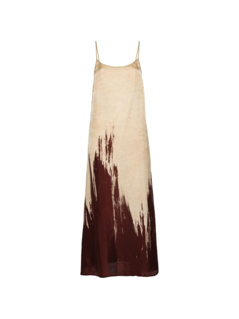 Anaya dress Highlights - Beige/oxblood red - Satin weave - Tie-dye effect - Abstract pattern print - Slip silhouette - Square neck - Adjustable shoulder straps - Straight hem - Long length - This piece is handmade, meaning your purchase is unique and may vary slightly from the item pictured. Made in Italy Composition Viscose 50%, Cupro 50% SIZE & FIT Model measurements Height 5 ft 11 in(1.8 m) Bust/Chest 33.07 in(84 cm) Hips 37.4 in(95 cm) Waist 25.19 in(64 cm) FittingInformation Designed for a slim fit that sits just away from the body offering a close yet comfortable fit The adjustable shoulder straps allow for a preferred fit when worn Made from a midweight non-stretch fabric This piece fits true to size – take your usual size