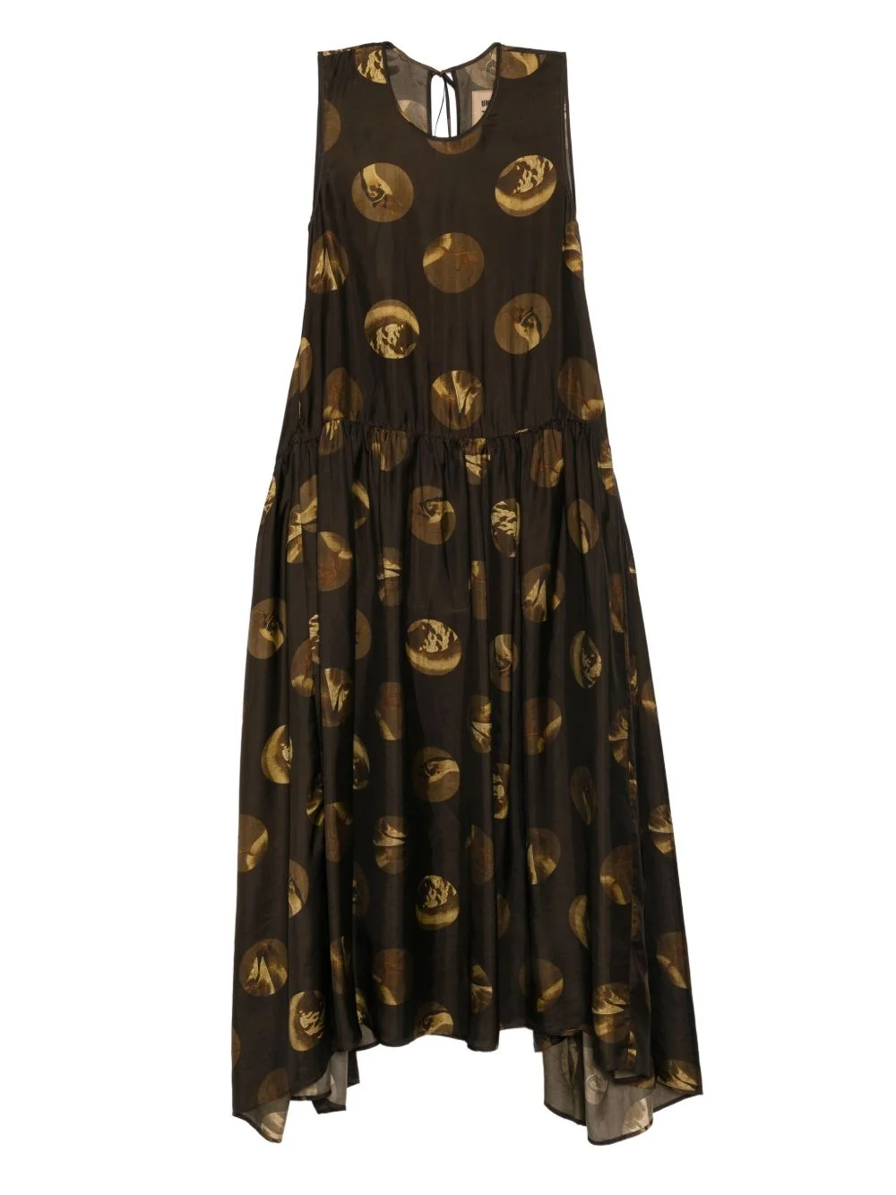 Moulay dress Highlights - Cedar brown - Two side inset pockets - All-over graphic print - Sleeveless Made in Italy Composition Cupro 50%, Viscose 50% SIZE & FIT Model measurements Height 5 ft 10 in(1.78 m) Bust/Chest 30.31 in(77 cm) Hips 34.64 in(88 cm) Waist 23.22 in(59 cm) FittingInformation Designed to be unstructured, offering a loose fit throughout Made from a midweight non-stretch fabric