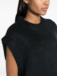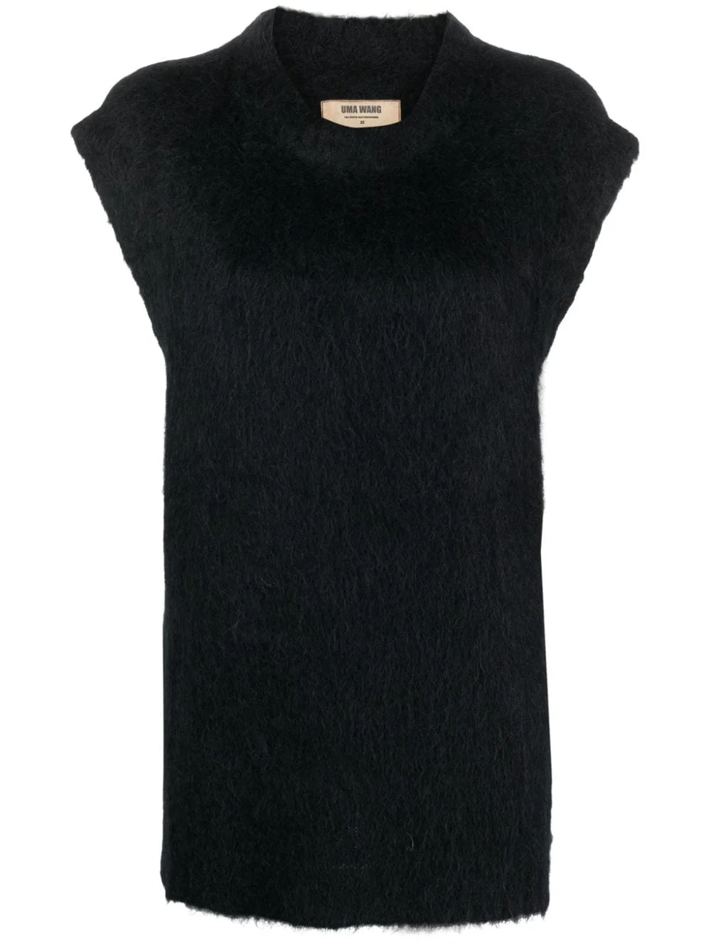 brushed-effect knitted vest Highlights - Black - Ribbed-knit edge - Brushed effect - Crew neck - Drop shoulder - Sleeveless - Straight hem Made in Italy Composition Alpaca 44%, Camel Hair 26%, Wool 18%, Polyamide 12% SIZE & FIT Model measurements Height 5 ft 11 in(1.8 m) Bust/Chest 30.7 in(78 cm) Hips 35.03 in(89 cm) Waist 24.4 in(62 cm) FittingInformation Designed for an oversized fit, offering additional room throughout Made with a midweight knit, this piece offers some stretch This piece fits true to size – take your usual size Washing instructions Hand Wash