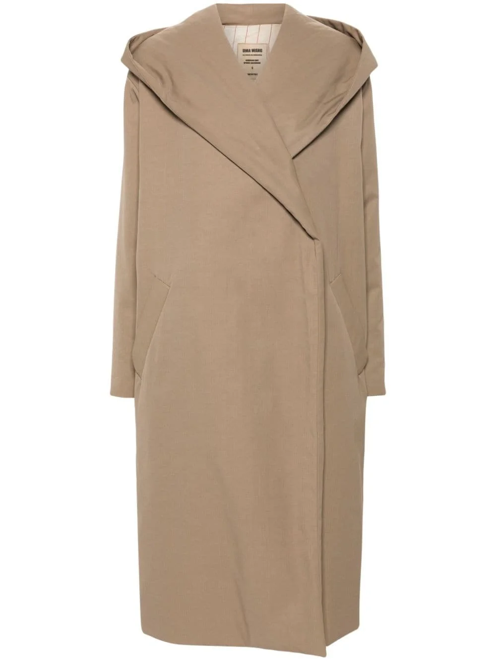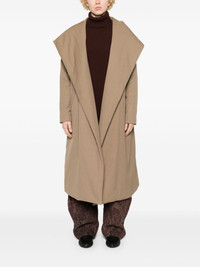 cardigan coat Highlights - Sand brown - Interlock weave - Slouchy hood - Shawl lapels - Open front - Long sleeves - Two side welt pockets - Straight hem - Mid-length - Satin lining Made in Italy Composition Viscose 54% Lining: Cupro 50%, Viscose 50% Outer: Cotton 46% Washing instructions Hand Wash