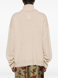 asymmetric cashmere jumper Highlights - Beige - High neck - Frayed hem - Long sleeves Made in Italy Composition Cashmere 100%