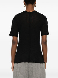 cashmere T-shirt Highlights - Black - Cashmere - Fine knit - V-neck - Rolled trim - Raised seam detail - Short sleeves - Straight hem Made in Italy Composition Cashmere 100% SIZE & FIT Model measurements Height 5 ft 11 in(1.8 m) Bust/Chest 31.49 in(80 cm) Hips 36.61 in(93 cm) Waist 24.4 in(62 cm) FittingInformation Designed for a relaxed fit, this piece allows for comfort and movement when worn Made with a fine knit, this piece offers some stretch