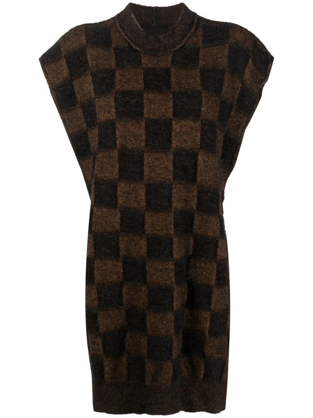 checkerboard-pattern knitted vest Highlights - Coffee brown/black - Knitted construction - Checkerboard knit - Crew neck - Sleeveless - Side tie fastening - Straight hem - Thigh-length Made in Italy Composition Polyamide 55%, Alpaca Wool 30%, Wool 15% Washing instructions Hand Wash