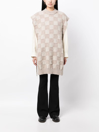 checkerboard-pattern knitted vest light beige/ivory white knitted construction checkerboard knit crew neck sleeveless side tie fastening straight hem thigh-length Made in Italy Composition Polyamide 55%, Alpaca 30%, Wool 15% SIZE & FIT Model measurements Height 5 ft 10 in(1.77 m) Bust/Chest 28.74 in(73 cm) Hips 35.82 in(91 cm) Waist 24.4 in(62 cm) FittingInformation Designed to be unstructured, offering a loose fit throughout Made with a heavyweight knit, this piece offers some stretch This piece fits true to size – those with a petite frame may wish to take one size down Washing instructions Hand Wash