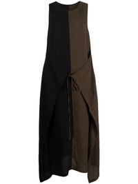 colour-block sleeveless midi dress Highlights - Brown/black - Colour-block design - Round neck - Sleeveless - Front tie fastening - Calf-length - Asymmetric hem Made in Italy Composition Viscose 100% SIZE & FIT Model measurements Height 5 ft 9 in(1.76 m) Bust/Chest 31.1 in(79 cm) Hips 35.03 in(89 cm) Waist 24.4 in(62 cm) FittingInformation Designed to be unstructured, offering a loose fit throughout Made from a midweight non-stretch fabric This piece fits true to size – take your usual size Washing instructions Hand Wash