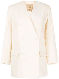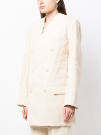 cotton double-breasted blazer Highlights - Cream white - Cotton - V-neck - Double-breasted button fastening - Long puff sleeves - Buttoned cuffs - Two side flap pockets - Straight hem Made in Italy Composition Body: Cotton 100% SIZE & FIT Model measurements Height 5 ft 10 in(1.78 m) Bust/Chest 30.31 in(77 cm) Hips 34.64 in(88 cm) Waist 24.01 in(61 cm) FittingInformation Designed for an oversized fit, offering additional room throughout The internal shoulder pads offer a structured shape Made from a midweight non-stretch fabric This piece fits true to size – take your usual size Washing instructions Hand Wash