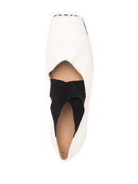 White/black leather cross-strap ballerina shoes from UMA WANG featuring slip-on style, square toe, crossover strap detail, elasticated straps, branded leather insole and flat rubber sole. Highlights - White/black - Leather - Slip-on style - Square toe - Crossover strap detail - Elasticated straps - Branded leather insole - Flat rubber sole Made in Italy Composition sole: Leather 100% lining: Leather 100% outer: Leather 100% Product measurements for size: 37 (IT) Heel: 2.5 cm (1 in)