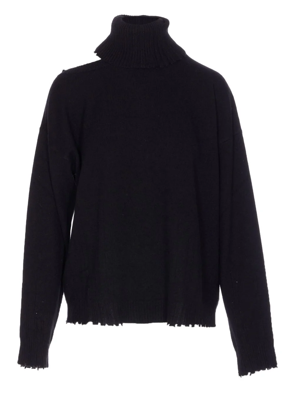 cutout distressed sweater Highlights - Black - High neck - Cutout detail - Long sleeves - Distressed effect - Square detail to the rear Made in Italy Composition Cashmere 100%