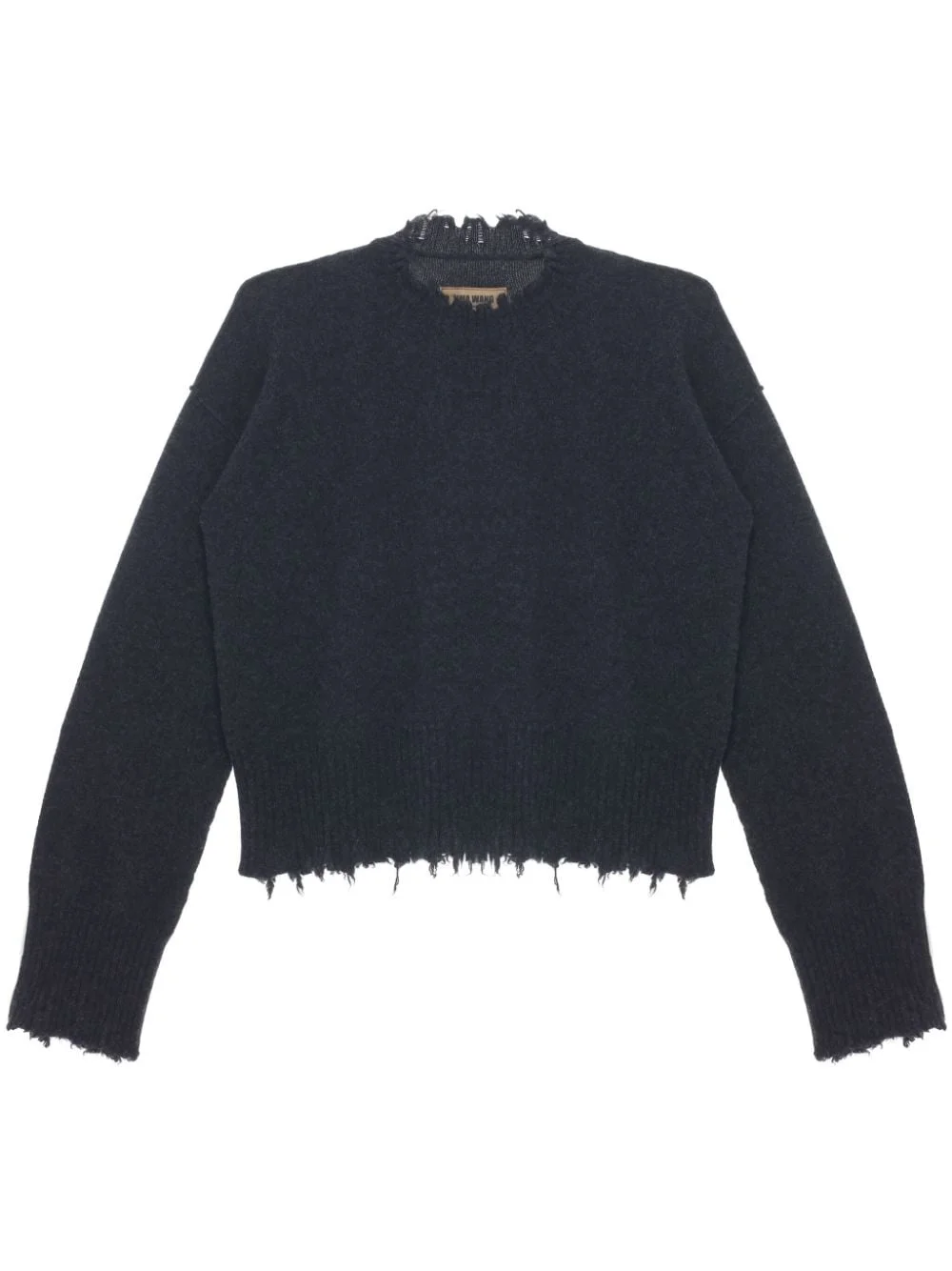distressed cashmere jumper Highlights - Dark grey - Cashmere - Knitted construction - Distressed finish - Crew neck - Long sleeves - Straight hem Made in Italy Composition Cashmere 100% Washing instructions Read Manufacturer Guidelines