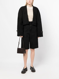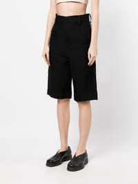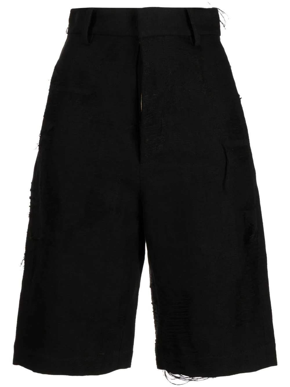 distressed-finish knee-length shorts Highlights - Black - Cotton blend - Distressed effect - Belt loops - Concealed front fastening - Two side inset pockets - Two rear welt pockets Made in Italy Composition Cotton 53%, Flax 47% SIZE & FIT Model measurements Height 5 ft 10 in(1.78 m) Bust/Chest 30.31 in(77 cm) Hips 34.64 in(88 cm) Waist 24.01 in(61 cm) Washing instructions Hand Wash
