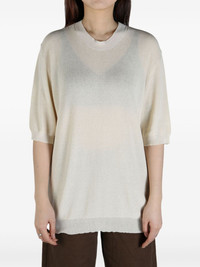 fine-knit T-shirt Highlights - Off-white - Crew neck - Drop shoulder - Short sleeves - Ribbed cuffs and hem Made in Italy Composition Cotton 70%, Silk 30%