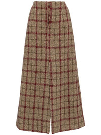 Gauche skirt Highlights - Chestnut brown - Dark red - Check pattern - Concealed front button fastening - Front slit - Two rear button-fastening jetted pockets - Rear slit - Full lining Made in Italy Composition Body: Virgin Wool 48%, Polyester 14% SIZE & FIT Model measurements Height 5 ft 9 in(1.76 m) Bust/Chest 31.1 in(79 cm) Hips 35.03 in(89 cm) Waist 24.4 in(62 cm) FittingInformation This maxi-length skirt is intended to be worn just below the waist The vented hem offers movement at the rear Made from a midweight non-stretch fabric