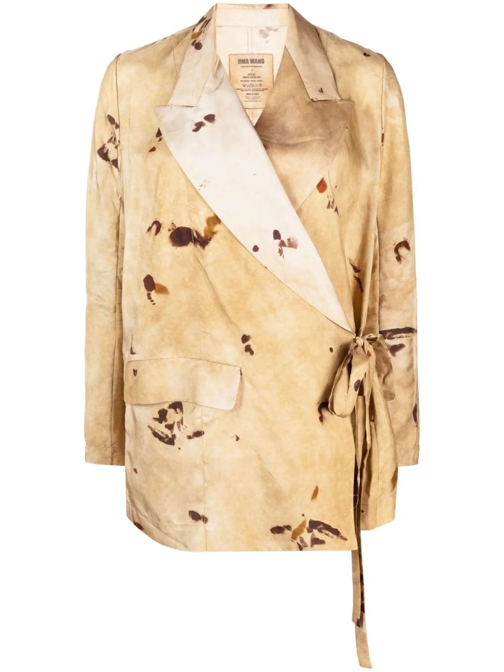 graphic-print side-fastening blazer Highlights - Beige/brown - Wide peak lapels - All-over graphic print - Long sleeves - Buttoned cuffs - Thigh-length - Straight hem - Side tie fastening - Faux pocket detail Made in Italy Composition Viscose 100% Washing instructions Hand Wash